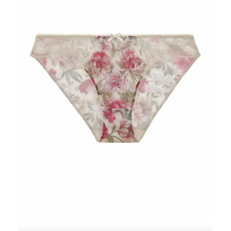 La culotte brésilienne de la ligne Magic Garden séduit par la richesse de ses matières et le confort de sa coupe. Le dos en tulle imprimé offre une couvrance agréable. L’avant du modèle joue les contrastes entre la dentelle Leavers et le motif floral, et s’agrémente d’un détail de jour-échelle délicieusement sensuel.