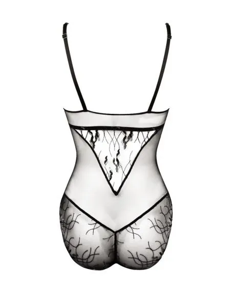 Le body de la collection Les Nuits Chics de Lise Charmel offre des broderies sur un tulle transparent, pour un look élégant et sensuel et une silhouette joliment sculptée, il est confortable au porter.