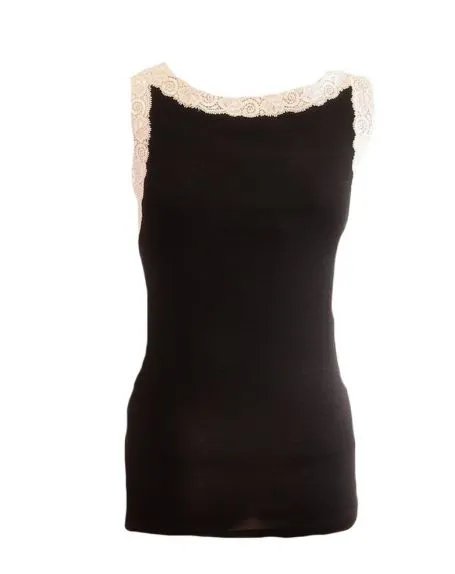 Un débardeur laine & soie fabriqué en Italie au décolleté orné d’une délicate dentelle Leavers pour un confort optimal et une esthétique raffinée.