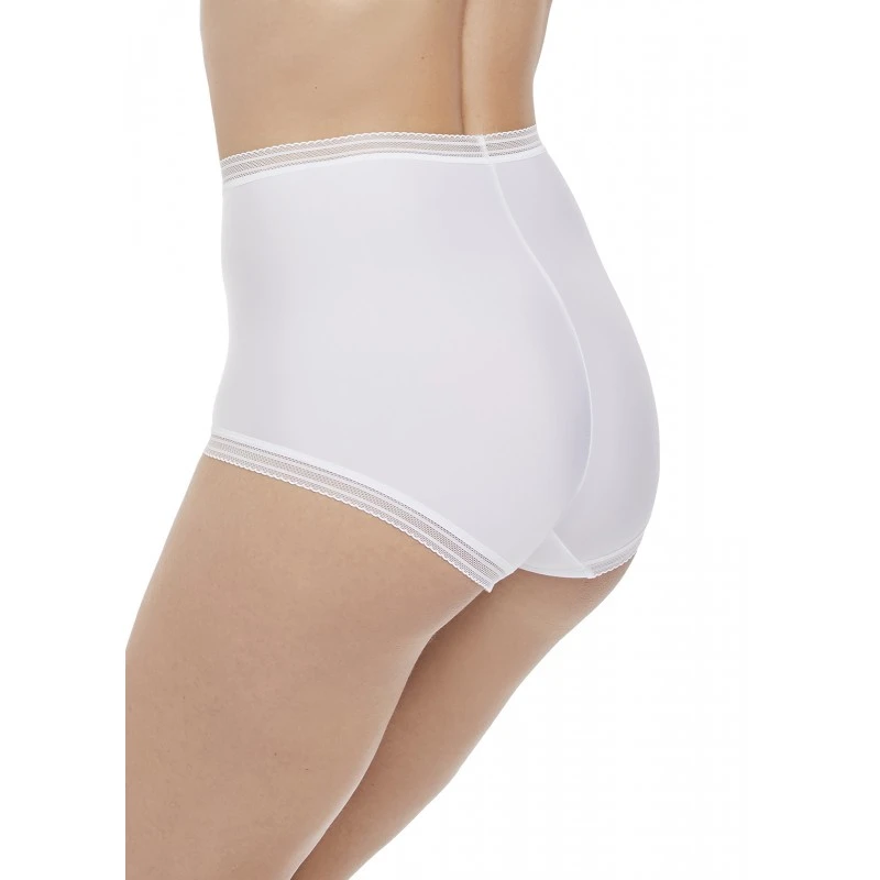 Complétez la collection de lingerie intemporelle Fusion de Fantasie en blanc avec la culotte taille haute, conçue avec des tissus doux et un panneau de ventre doublé pour un contrôle de la lumière et un lissage