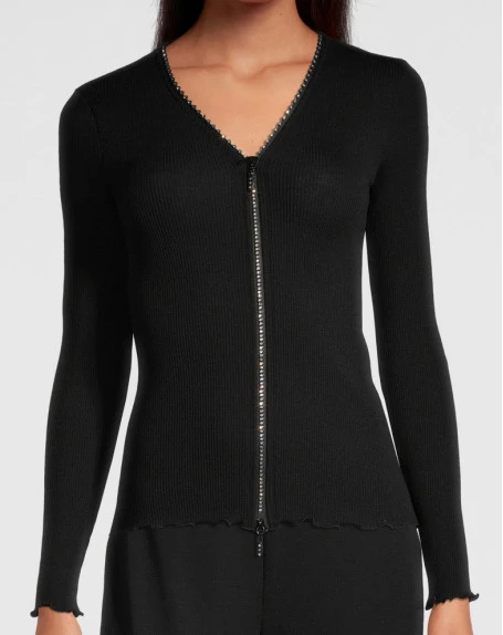 Ce chemisier Oscalito « Elegante » est composé de 70% de laine et 30% de soie. Vous serez séduit par son allure élégante, sobre et la perfection de ses finitions. L’originalité de ce modèle provient de sa fermeture éclair en strass.