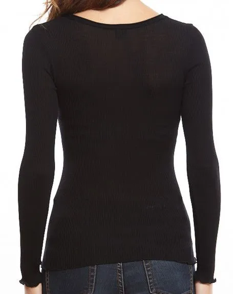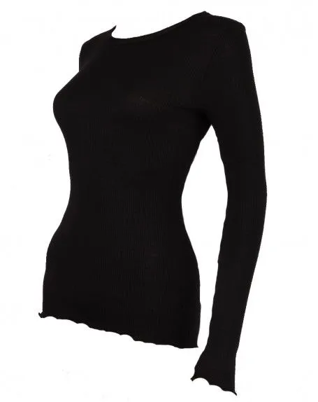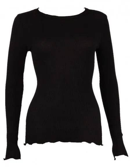 Ce maillot de corps col rond avec un biais en satin Oscalito propose une maille plissée en laine et soie douce et confortable. Ce modèle est l’un des grands standards de la marque et est totalement fabriqué en Italie (70% laine, 30% soie). Couleur – Noir.