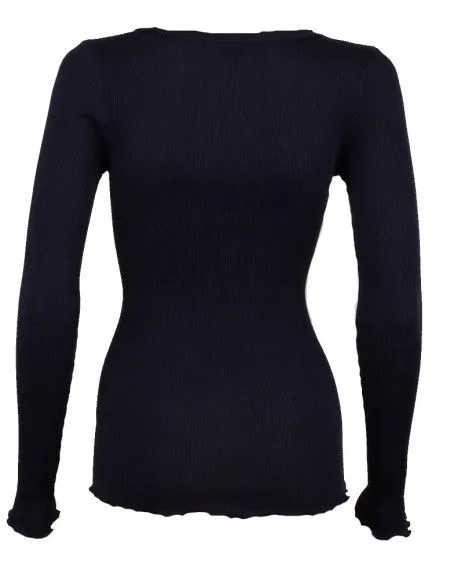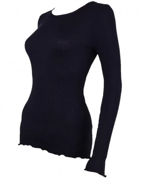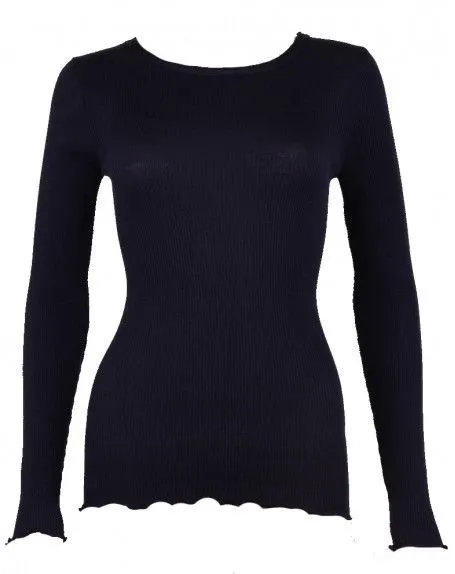 Ce maillot de corps col rond avec un biais en satin Oscalito propose une maille plissée en laine et soie douce et confortable. Ce modèle est l’un des grands standards de la marque et est totalement fabriqué en Italie (70% laine, 30% soie). Couleur – Bleu.