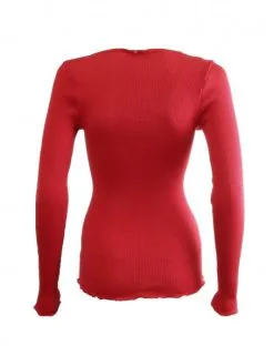 Ce maillot de corps col rond avec un biais en satin Oscalito propose une maille plissée en laine et soie douce et confortable. Ce modèle est l’un des grands standards de la marque et est totalement fabriqué en Italie (70% laine, 30% soie). Couleur – Rouge.