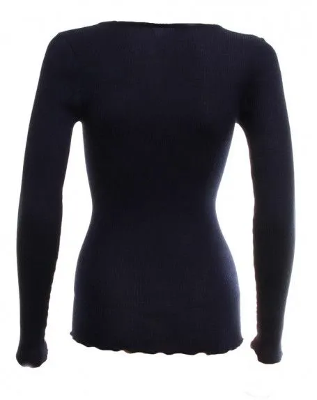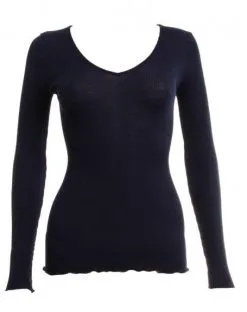 Ce maillot de corps col V avec un biais en satin Oscalito propose une maille plissée en laine et soie douce et confortable. Ce modèle est l’un des grands standards de la marque et est totalement fabriqué en Italie (70% laine, 30% soie). Couleur – Bleu.