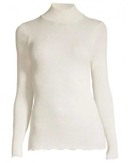 Ce top Oscalito propose une maille plissée en laine et soie douce et confortable. Il propose un col montant sobre et élégant. De plus, il est totalement fabriqué en Italie (70% laine, 30% soie). Couleur – Champagne.