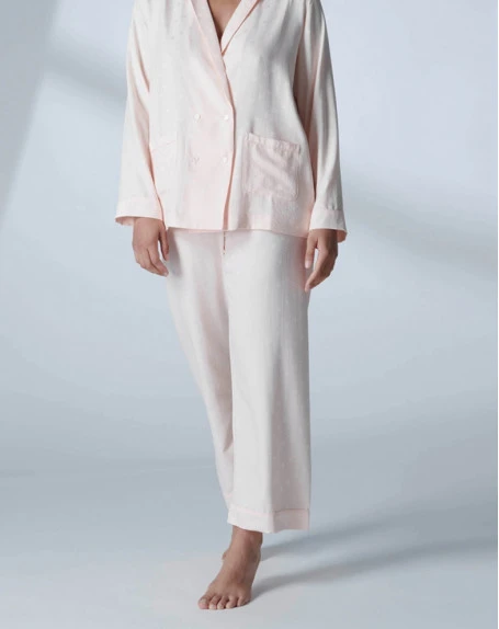 Le pantalon de nuit Caprice de la marque Simone Pérèle offre une sensualité tout en confort, grâce à sa matière légère et aérienne, ainsi qu’à son satin Jacquard élégant. Sa coupe droite rappel l’esprit des tailleurs et apporte une touche d’élégance signée Simone Pérèle.