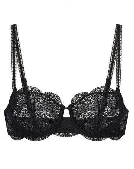 Le soutien-gorge corbeille Simone Pérèle de la collection Karma allie confort et sensualité. Les bretelles sont réglables et se portent croisées dans le dos ou non. Une dentelle moderne et légère.