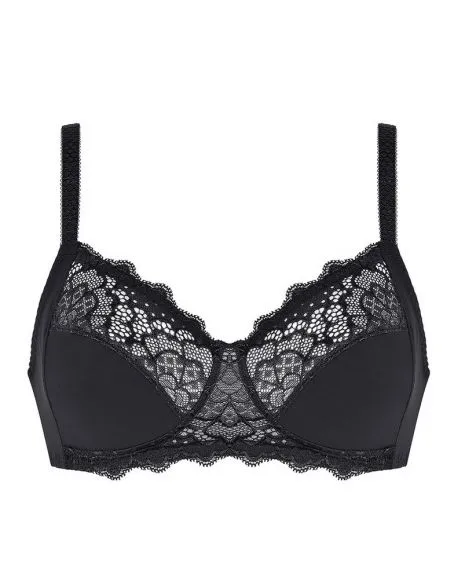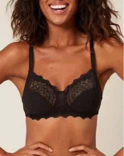 Le soutien-gorge sans armature Caresse de Simone Pérèle vous procure un confort optimal grâce à un coton ultra-doux et extensible. Empiècement de dentelle sur le haut et à l’entre-bonnets, bretelles extensibles et réglables. La partie intérieure de ce soutien-gorge est entièrement doublée en coton pour un confort optimal.
