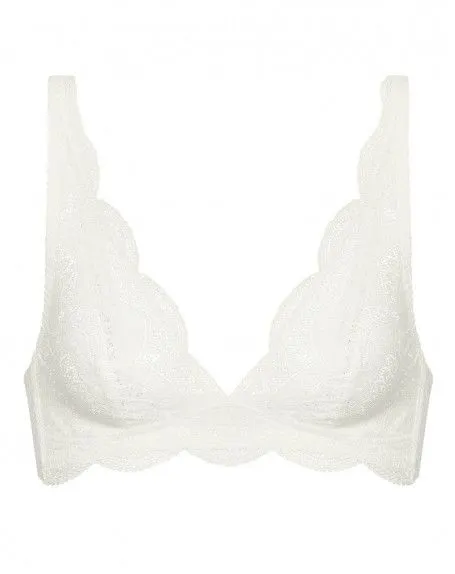 Le soutien-gorge triangle Simone Pérèle de la collection Karma offre un confort parfait sans armatures. Les bretelles sont réglables et se portent croisées dans le dos ou non. Une dentelle moderne et légère.