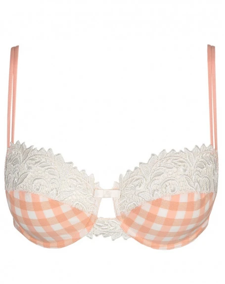 La collection Ely de la marque de lingerie Marie Jo propose des modèles qui combinent motifs à carreaux et fine dentelle. Cette alliance est tendance et inédite pour un look à la pointe de la mode.
