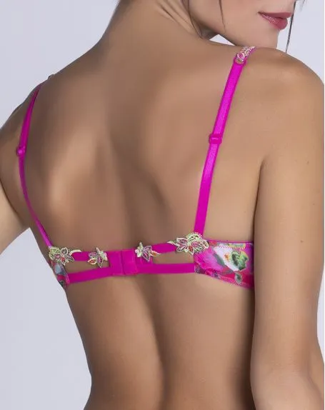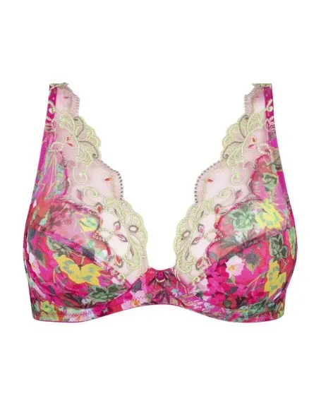 Le soutien-gorge glamour Envolée de Fleurs de la marque Lise Charmel offre un décolleté sensuel plongeant doté d’un galbe arrondi, il met en valeur la poitrine. Il est sublimé par ses broderies légères et élégantes.