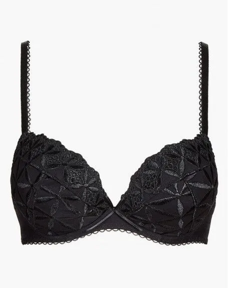 Le soutien-gorge Plunge Coussinet Aubade de la collection Bahia & Moi est un modèle à la fois séduisant et confortable. Il se caractérise par : un détail de galon français sur une broderie anglaise, une maille en coton lycra clean cut, des bretelles rigides et douces décorées d’un picot fantaisie et un laçage en ruban de satin.