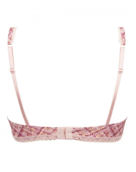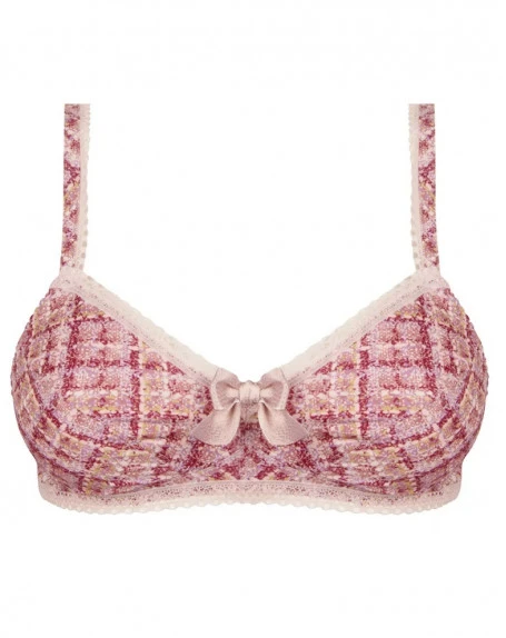 Le soutien-gorge sans armature Antigel de la collection Un amour de Tweed propose des bretelles élastiques avant fixes et enrichies d’un imprimé et d’une dentelle, habillant ainsi le décolleté et la maille ultra douce, imprimée d’un motif exclusif chaine et trame, effet tweed.