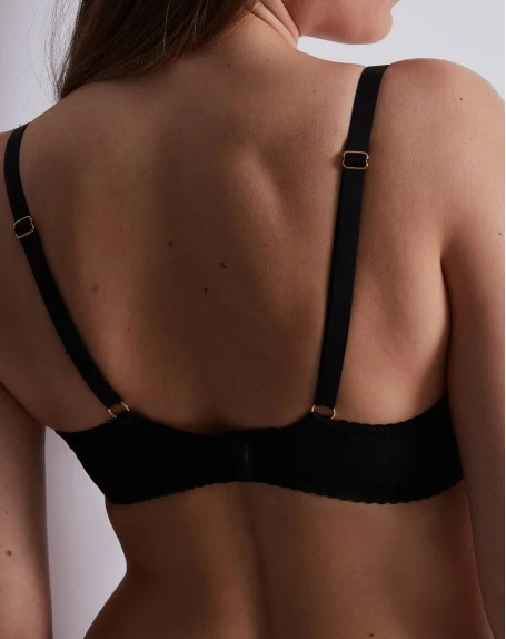 La collection Hypnolove met en avant une broderie graphique luxueuse, accompagnée de nombreux détails très raffinés. La broderie noire est mêlée d’un fil lurex doré afin d’affirmer votre pouvoir de séduction.
