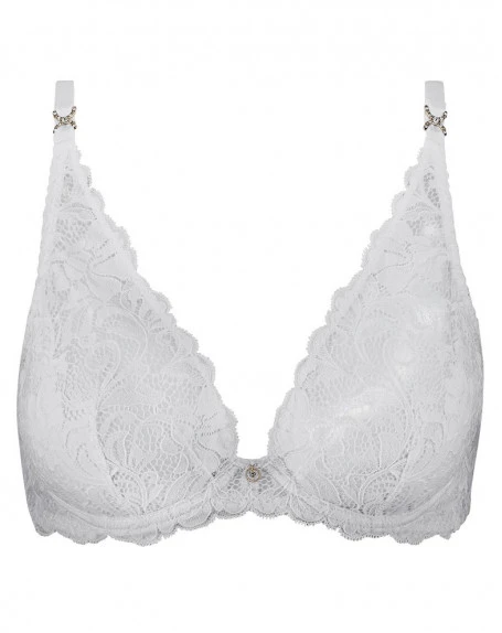 Le soutien-gorge triangle Aubade de la collection Mon Bijou vous assure élégance et sensualité grâce à sa dentelle, ses nœuds en satin et son petit bijou à l’entre-poitrine, ainsi qu’un bon maintien avec ses armatures.