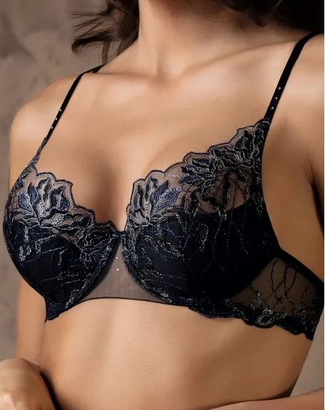 Le soutien-gorge triangle à armatures de la collection Les Nuits Chics de Lise Charmel offre un look élégant et sensuel grâce au joli décolleté, une forme enveloppant confortablement la poitrine et assurant un parfait maintien.