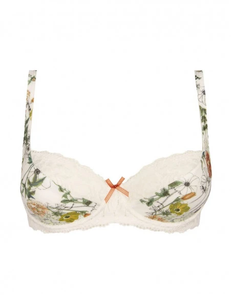 Le soutien-gorge tulipe à armatures Antigel de la collection Liberté en Fleurs offre une bordure élastique en polyamide élasthanne fantaisie à ponts. Le modèle est féminisé par un fin galon de dentelle Jacquard au dessin végétal. Les bretelles sont enrichies d’une bande en dentelle, habillant le décolleté. Pour plus de confort, le dos des bretelles est élastique. Pour embellir l’entre-gorge, un nœud orange souligné d’un liseré satin décore le soutien-gorge.