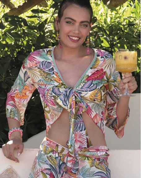 Le top de la collection La Muse Des Iles Antigel est parfait pour vous accompagner à la plage. Un grand nœud devant habille le ventre.